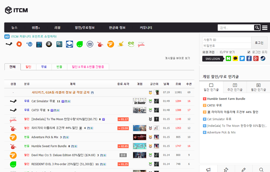스팀 게임들의 할인 정보를 알려주는 사이트입니다.