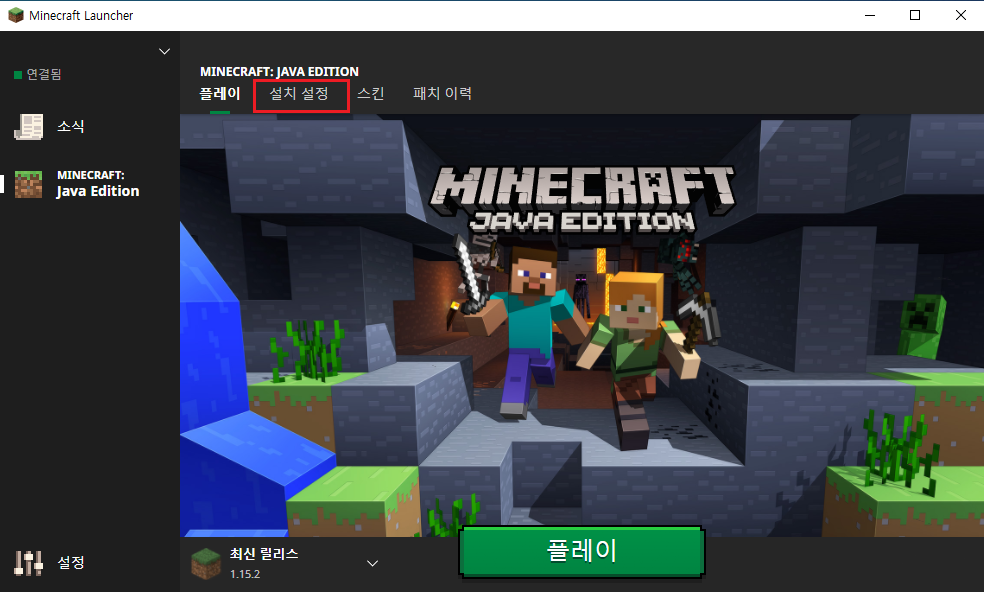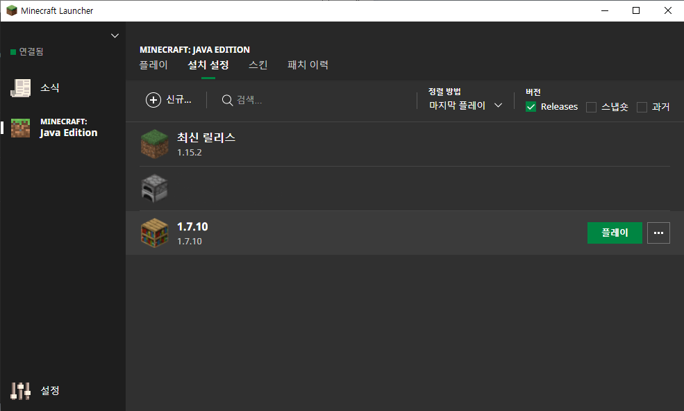 우선 마인크래프트의 런처를 실행 합니다.